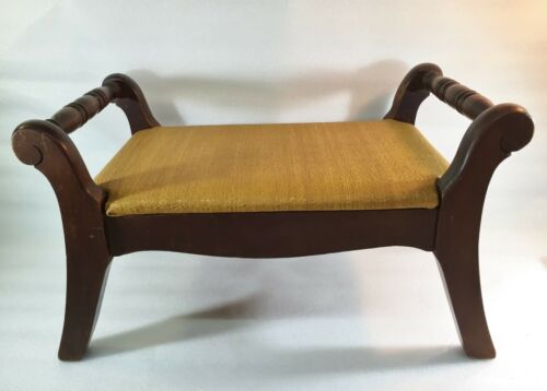 Vintage Wooden Vinyl Padded Foot Stool w/Handles