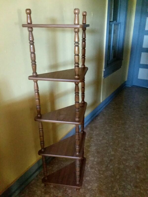 Title (ebay affiliate link): Vintage Oak Finish Wood Floor Corner Shelf Bookcase 5 Tier Plant Stand - Nice!!