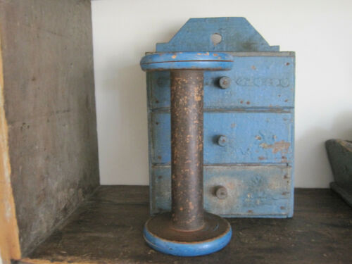 Title (ebay affiliate link): Vintage Primitive Original Blue Paint Wood Spool Great Display Piece Bargain