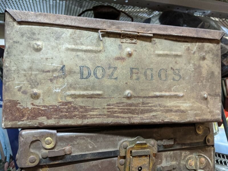 Title (ebay affiliate link): Vintage 30s WWII Era Metal 4 Dozen Egg CRATE Box Carrier with Carton Inserts