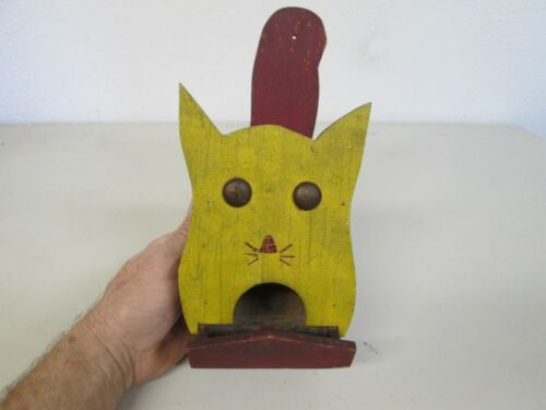 ANTIQUE VINTAGE PRIMITIVE WOOD WALL MOUNT CAT THEME MATCH HOLDER USED CONDITION