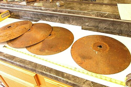 4 OLD RUSTY FARM TYPE DISK DISC BLADE CRAFT SEAT BASE HEAVY