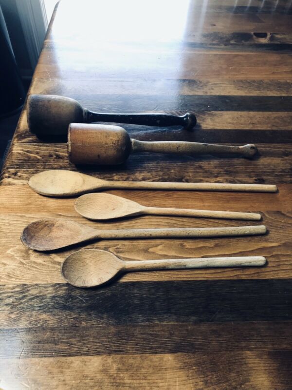 Title (ebay affiliate link): Vintage 6 Antique Primitive Wooden Kitchen Utensils~ (4) Spoons & (2) Mashers~