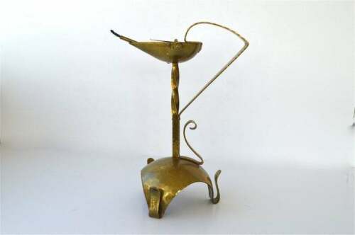 Title (ebay affiliate link): Antique Arts and Crafts Egyptianesque oil lamp hand beaten brass circa.1900