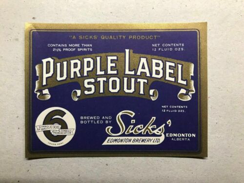 Title (ebay affiliate link): Canadian beer label - Sicks'' Edmonton Brewery - Purple Label Stout