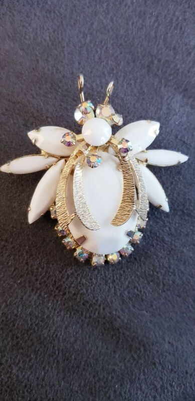Title (ebay affiliate link): Vintage White Milk Glass and AB Rhinestones Bumble Bee Pin