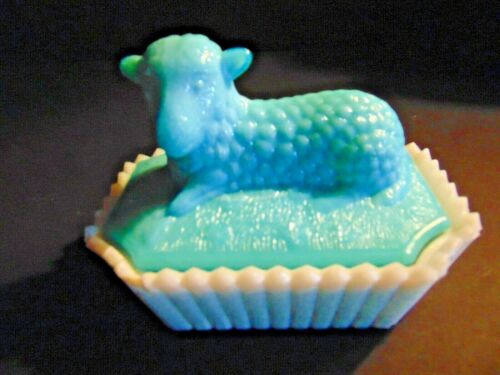 VTG West-Morleand Milk Glass Blue/White Lamb Covered Dish