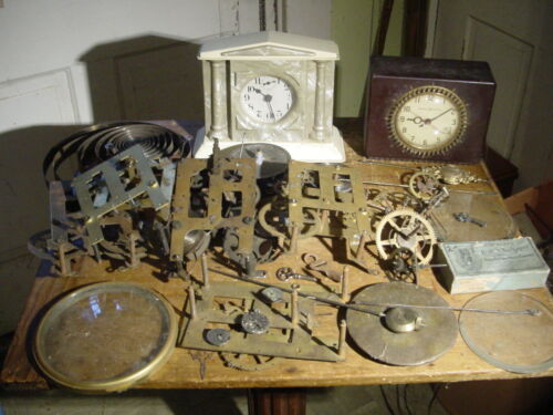 Title (ebay affiliate link): LOT 5 VARIOUS ANTIQUE CLOCK PARTS WORKING CLOCKS, DIALS, SPRINGS, GEARS, PARTS