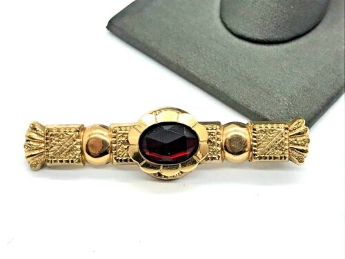 Antique Victorian Gold Filled Bohemian Garnet Bar Pin Brooch 4.4 grams