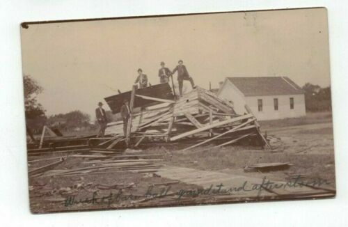 Antique real photo rppc post card "Wreck of Baseball Grandstand After Storm"