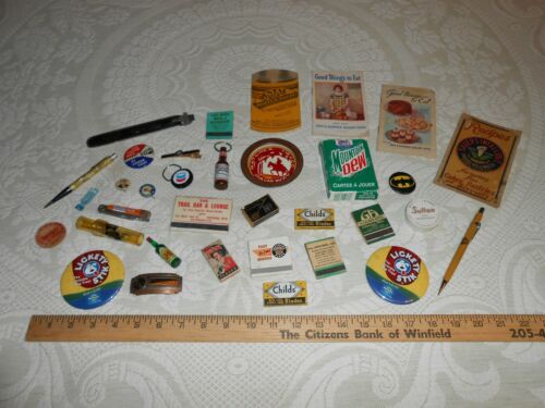 Title (ebay affiliate link): ANTIQUE ESTATE LOT Junk Drawer Smalls & Collectibles ADVERTISING Prizes Toys