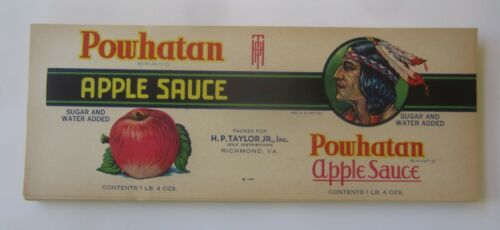 Wholesale Lot of 100 Old Vintage 1930''s Powhatan Apple Sauce CAN LABELS - INDIAN