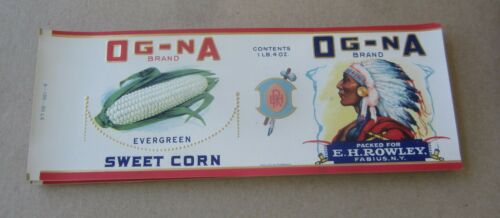 Wholesale Lot of 100 Old Vintage 1920''s OG-NA Sweet Corn - CAN LABELS - INDIAN
