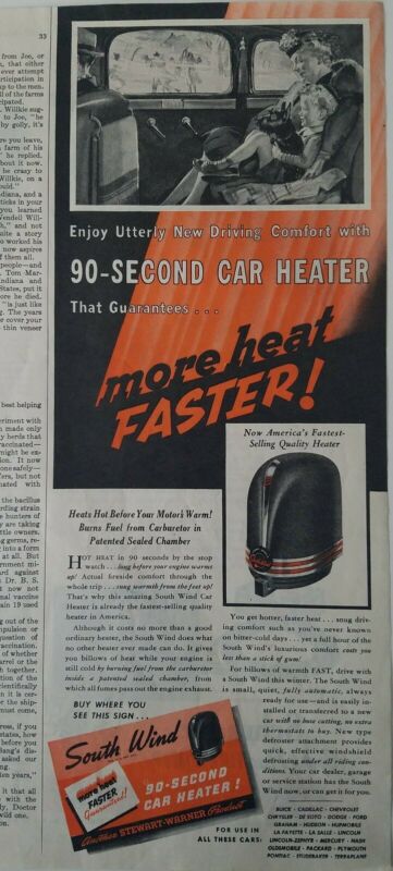 1940 Stewart Warner Southwind car heater boy Scottish Terrier Scottie dog ad