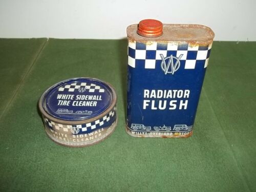 Vintage Jeep Willys Overland Tins Radiator Flush White Sidewall Cleaner