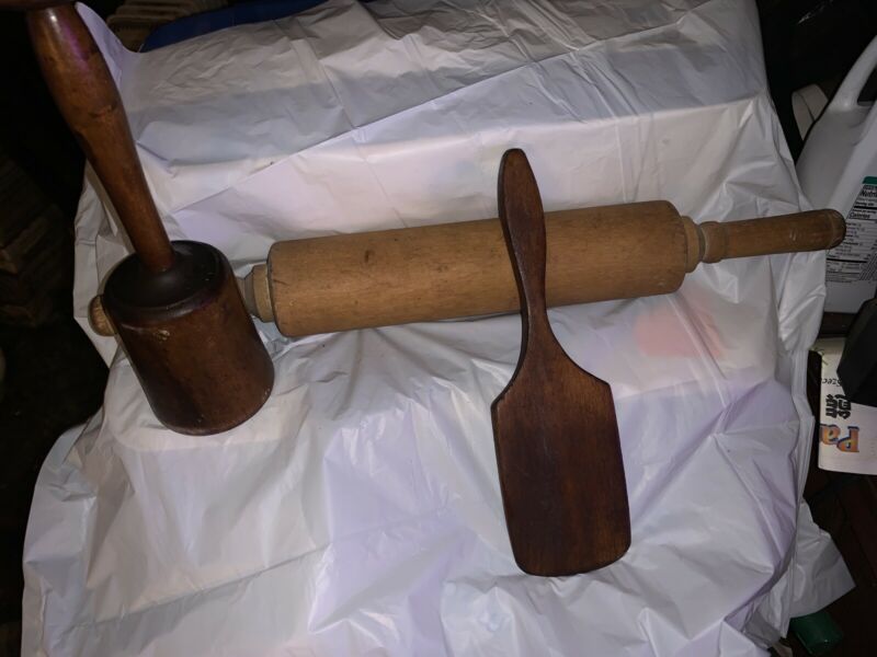 Title (ebay affiliate link): Early Antique (3) Kitchen Tools/Items-Wooden ware