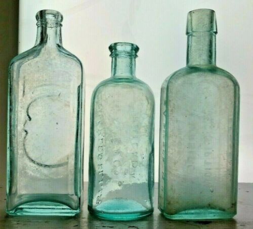Antique BLUE GLASS Medicine Bottle Lot-3 Dr. PIERCE N.Y.CHARLES ELLIS SON & Co.