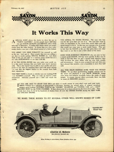 Title (ebay affiliate link): 1917 Saxon Motor Cars Ad: Saxon Six Closed Type Penn Auto Co. Lancaster, PA