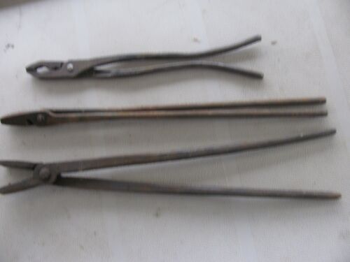 Lot of 3 Antique Iron Blacksmith Tongs/ Tools Hand Forge