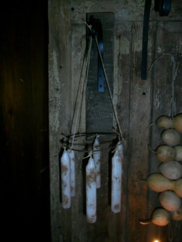 Title (ebay affiliate link): Primitive Candle Drying Rack, Rustic Wall Rack, Early Look, 6 Grungy Candles