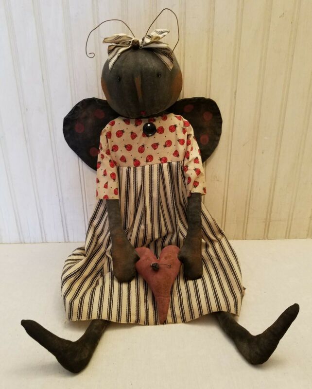 Title (ebay affiliate link): Primitive Grungy Big Harlequin Lady Bug Doll & Her Heart