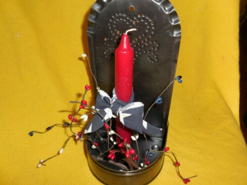 Title (ebay affiliate link): Metal wall sconce w/ new wax candle,pip berries,stars, bow..Country Prim decor