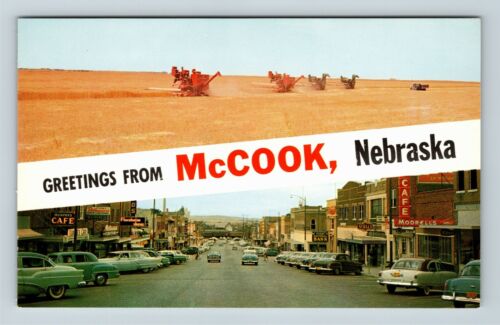 McCook NE Banner Greetings Harvest Modells Murphys Cafe Chrome Nebraska Postcard