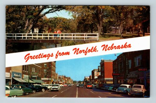 Norfolk NE Banner Greetings 7up Firestone Park Drug Chrome Nebraska Postcard
