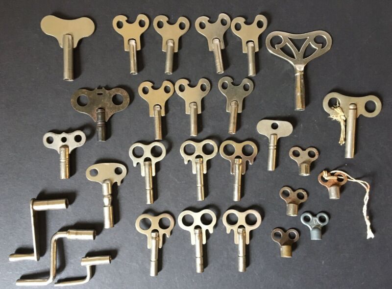 28 Antique / Vintage Clock Keys Lot