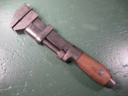 Title (ebay affiliate link): OLD USED VINTAGE MECHANICS TOOLS COES WOOD HANDLED ADJUSTABLE WRENCH.