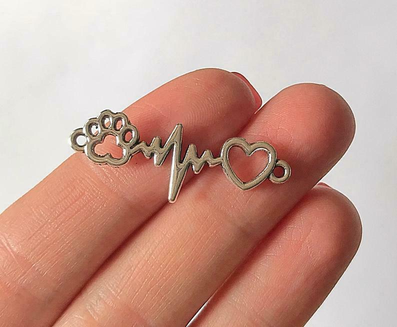Title (ebay affiliate link): 4pcs Antique Silver Pet Paw Print Heartbeat Connector Tone Bead Jewelry Making