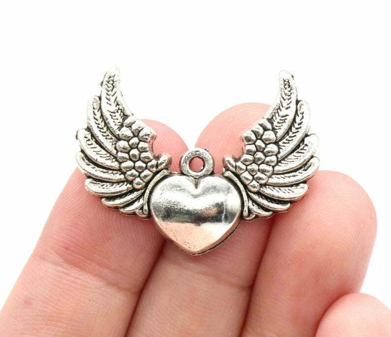 Title (ebay affiliate link): 4pcs Antique Silver Heart Charms Wing Charms Tone Pendant Bead Jewelry Making