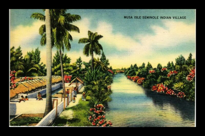 Title (ebay affiliate link): US POSTCARD LINEN MUSA ISLE SEMINOLE INDIAN VILLAGE