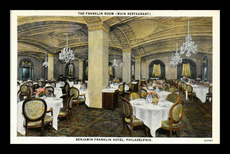Title (ebay affiliate link): US POSTCARD BENJAMIN FRANKLIN HOTEL MAIN RESTAURANT ROOM INTERIOR PHILADELPHIA