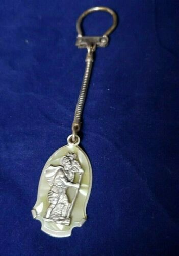 Vintage St Christopher Key Chain Beautiful Mother of Pearl Style Background