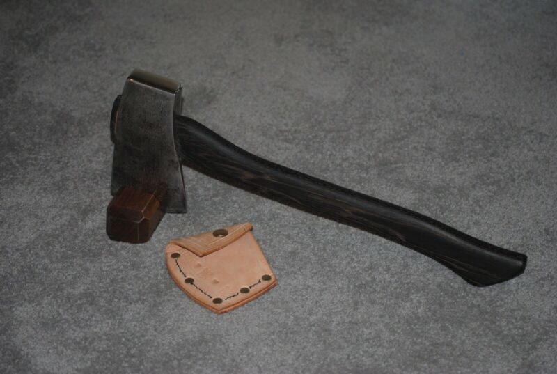 Title (ebay affiliate link): True Temper Tommy Axe. Hand Made Burnt Handle And Buck Skin Sheath