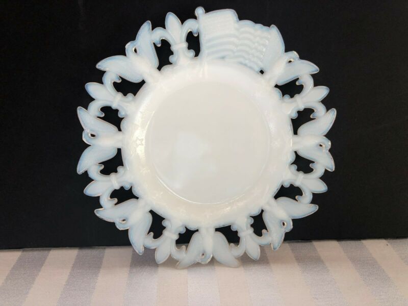 Westmoreland Milk Glass Plate with American Flag & Eagles WG mark on back