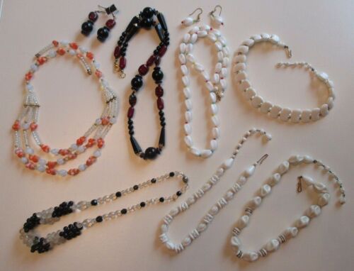 Vintage & Art Deco Art Glass Bead Molded Milk Glass Necklace Lot