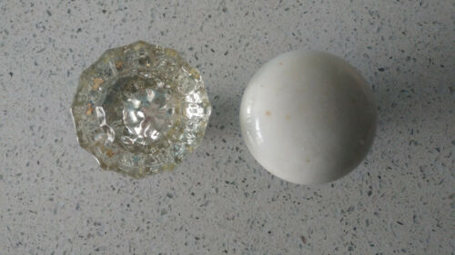 Lot Of 2 Vintage Door Knobs Glass & White Milk Glass Antique Old Door Handle