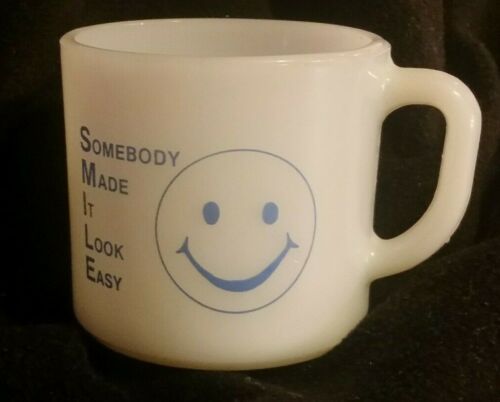 Title (ebay affiliate link): Vintage Anchor Hocking Milk Glass Smiley Face Advertising Coffee Mug