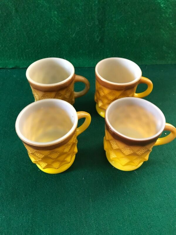 Title (ebay affiliate link): Vintage Set of Four Fire King 8 oz. Kimberly D Handle Milk Glass Coffee Mugs