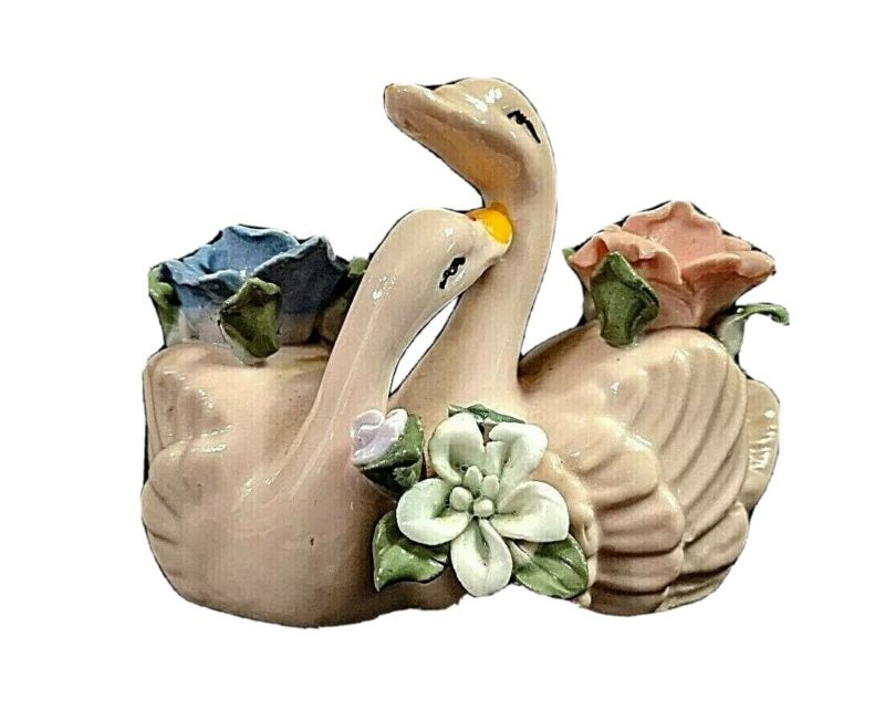 Title (ebay affiliate link): Vintage Pastel Pink Swans Pair, Ceramic, Capodimonte Style Flowers, Sophia Ann