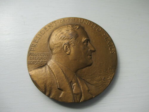 Title (ebay affiliate link): VINTAGE Huge 1945 FDR FRANKLIN DELANO ROOSEVELT 3" Diameter BRONZE MEDAL
