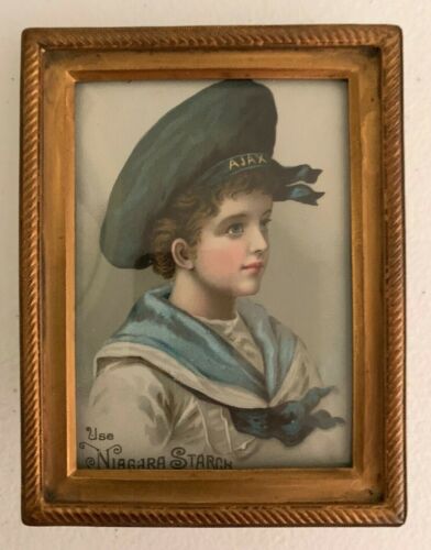 Title (ebay affiliate link): SMALL ANTIQUE BRASS EASEL PICTURE FRAME CONVEX BUBBLE GLASS NIAGRA STARCH AD