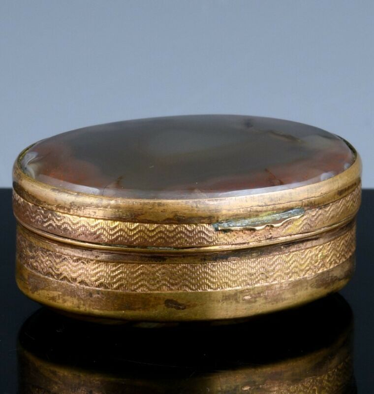 Title (ebay affiliate link): FINE c1820 GEORGIAN GILT BRASS & SCOTTISH BANDED AGATE SNUFF BOX CASE