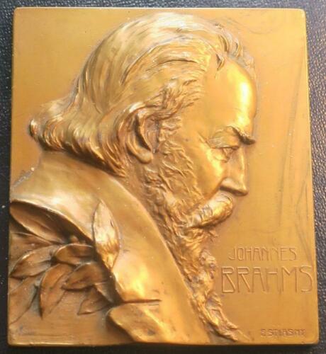 Title (ebay affiliate link): c. 1930s Bronze Bas-Relief Plaque Johannes Brahms by F. Stiasny, 2 1/4" x 2 1/2"