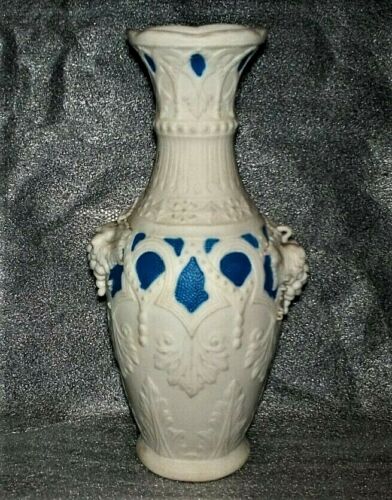 Title (ebay affiliate link): ANTIQUE PARIAN WARE VASE 9" TALL WHITE w/ BLUE TRIM GRAPES & LEAVES VASE