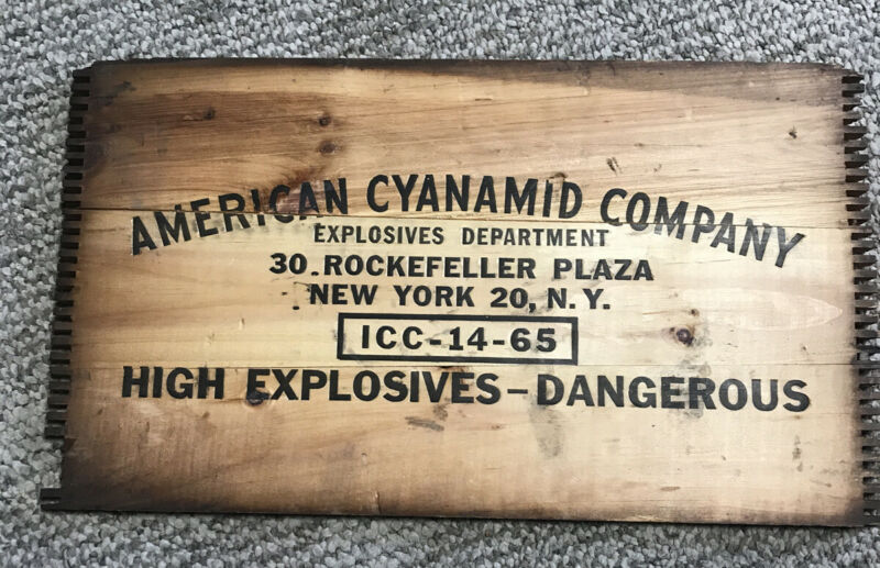 VINTAGE AMERICAN CYANAMID CO. HIGH EXPLOSIVES DYNAMITE BOX WOODEN CRATE Peace