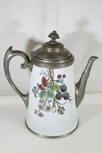 Title (ebay affiliate link): VERY RARE Antique Victorian Enamel Graniteware Lidded Teapot Raspberry White
