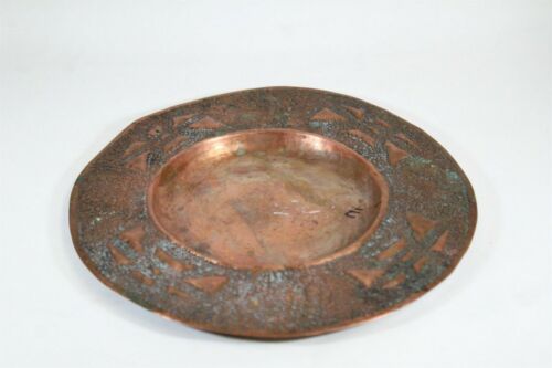Arts Crafts Boston School Hand Hammered Design Copper Round Tray Stickley Era